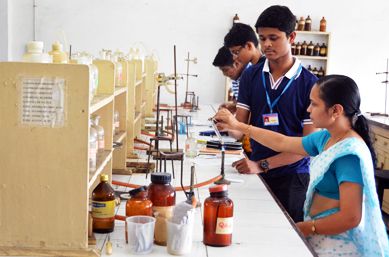 The Department of Chemistry is one of the premier science departments of the College with a dedicated and committed group of teachers who are not only keen in imparting quality education to the students but are also actively engaged in research. Undergraduate department consists of four full time faculty members. Post graduate department has three full time faculty members. Junior division consists of four members. Department has one assistant and six technical staff members. The undergraduate course consists of theoretical papers on inorganic, organic and physical chemistry.